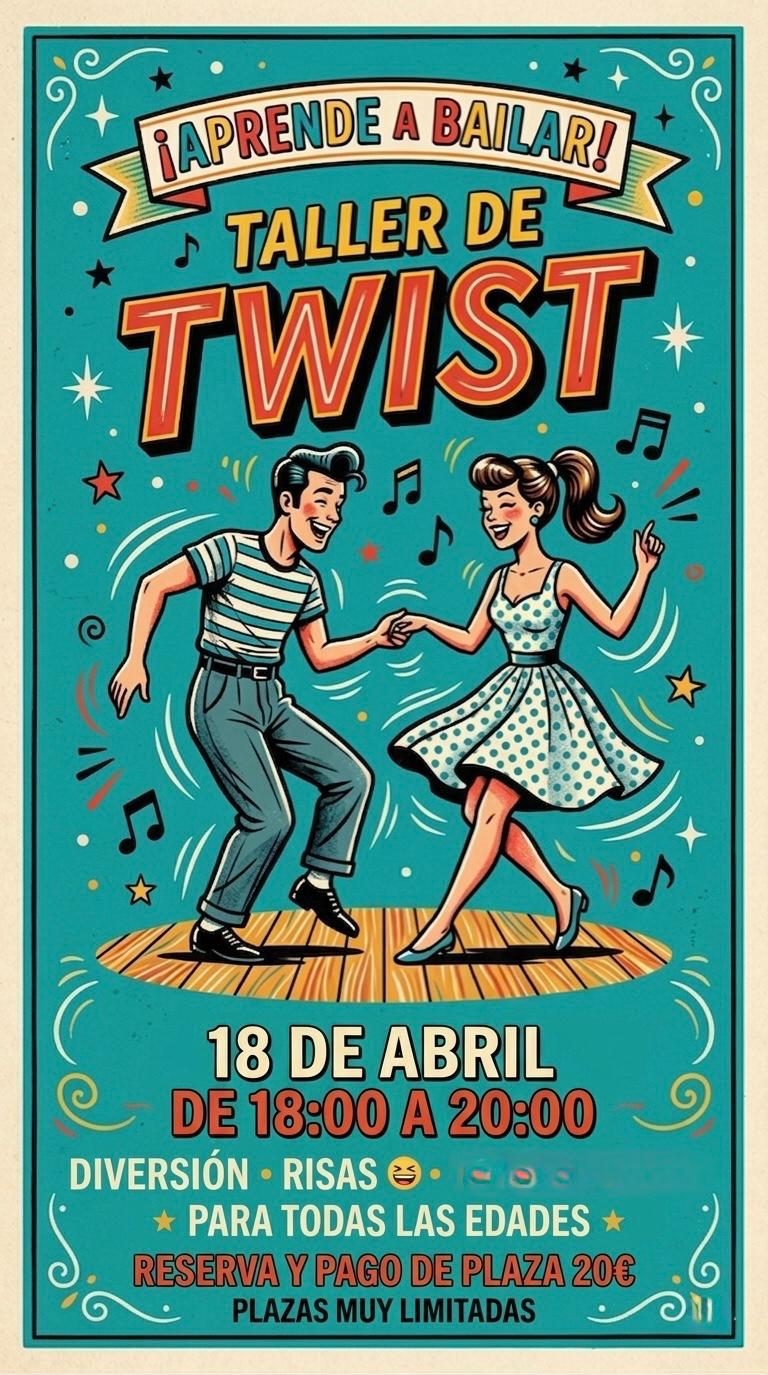 Taller de swing que es una forma de bailar muy paraceida al twist. Un par de horas donde las risas estan garantizadas. Para todo tipo de edades y niveles.